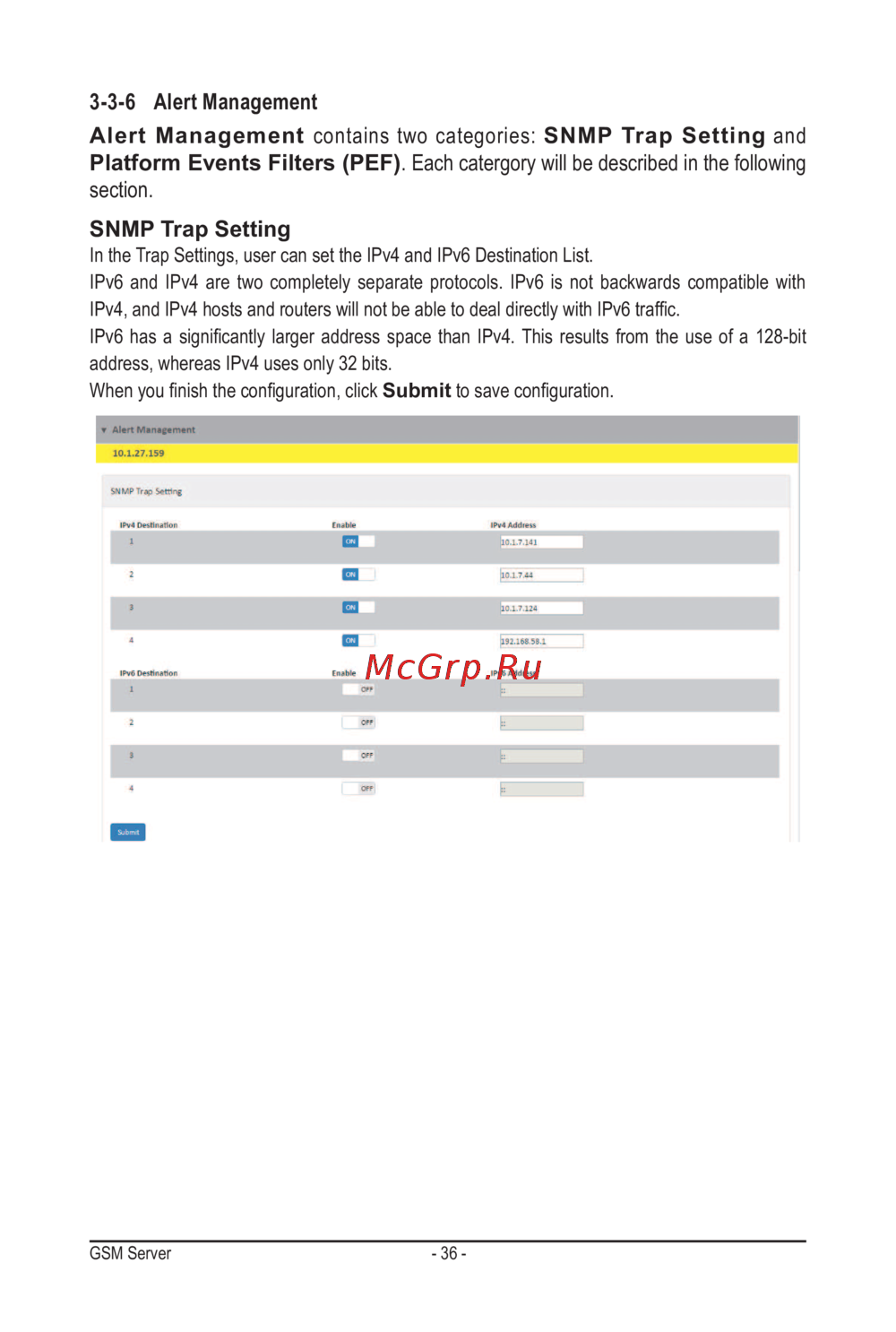 In the Trap Settings, user can set the IPv4 and IPv6 Destination List.