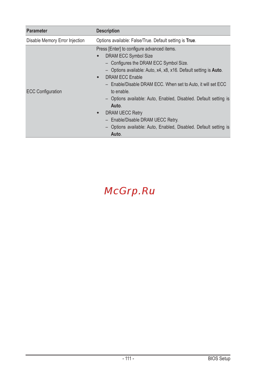 – Enable/Disable DRAM ECC. When set to Auto, it will set ECC
