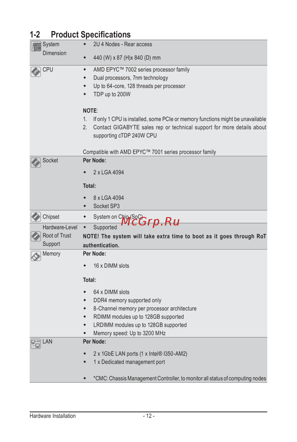 Gigabyte H262-Z6B (rev. 100) [12/172] 2 product specifications