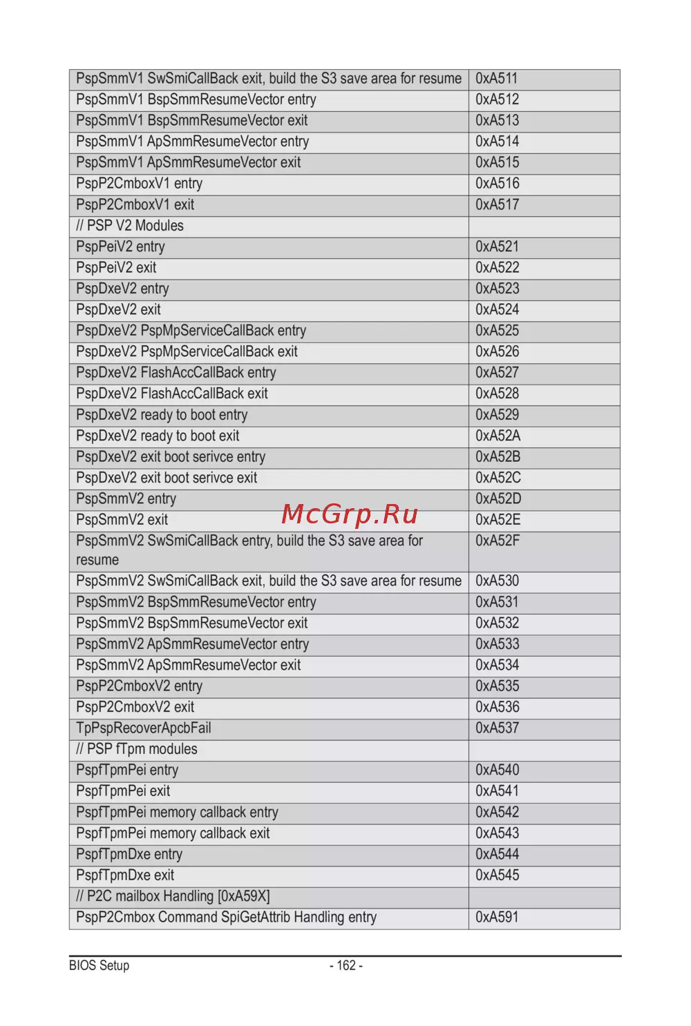 - 11 5 0xa5xx assigned for agesa psp module p.163