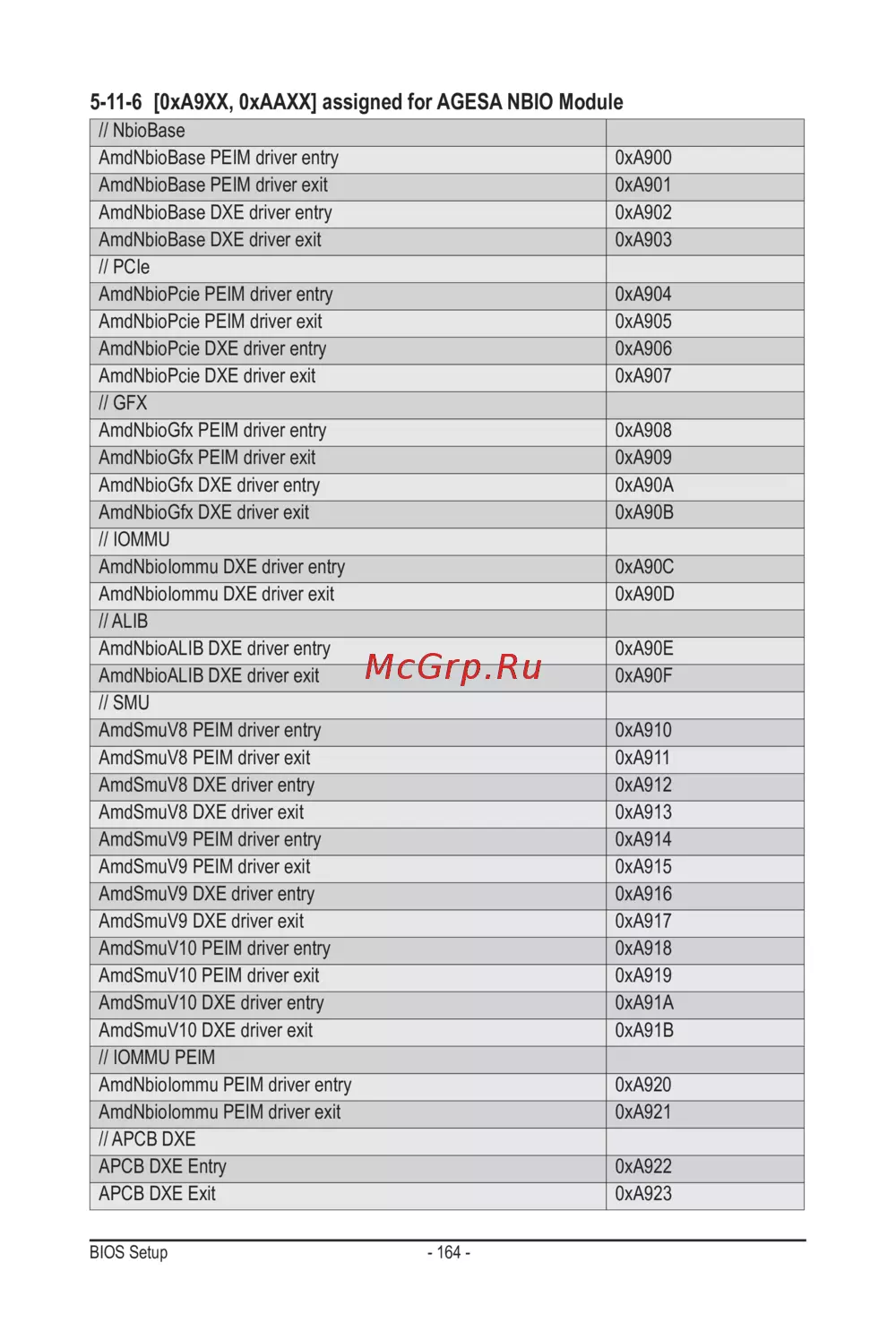 - 11 6 0xa9xx 0xaaxx assigned for agesa nbio module p.166