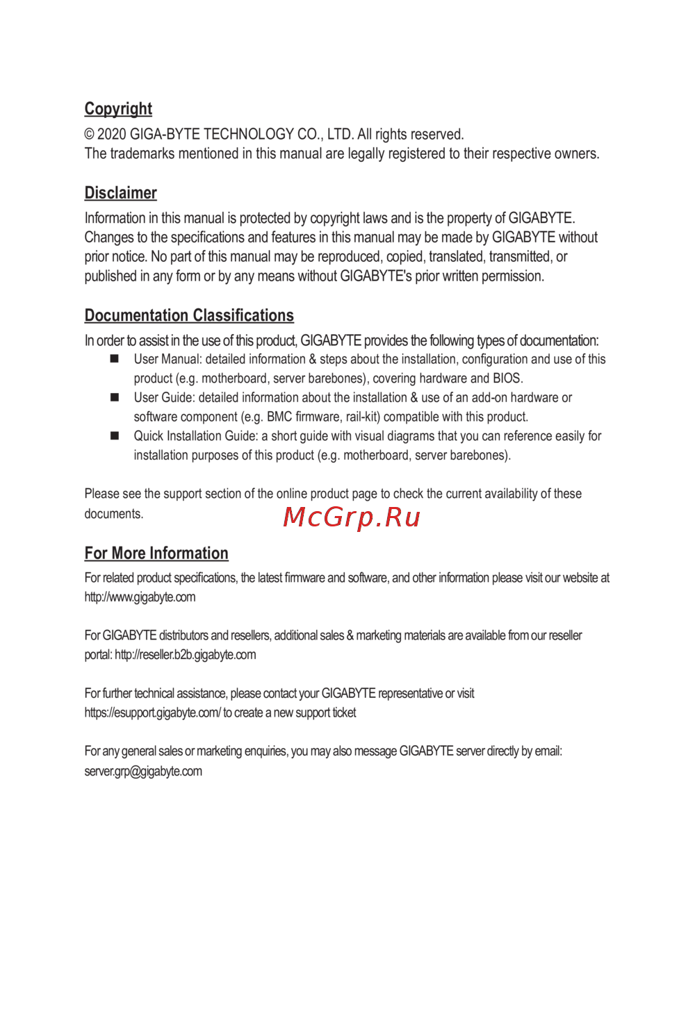 ![Gigabyte H262-Z6B (rev. 100) [2/172] Information in this manual is protected by copyright laws and is the property of gigabyte changes to the specifications and features in this manual may be made by gigabyte without prior notice no part of this manual may be reproduced copied translated transmitted or published in any form or by any means without gigabyte s prior written permission](/views2/1681240/page2/bg2.png)