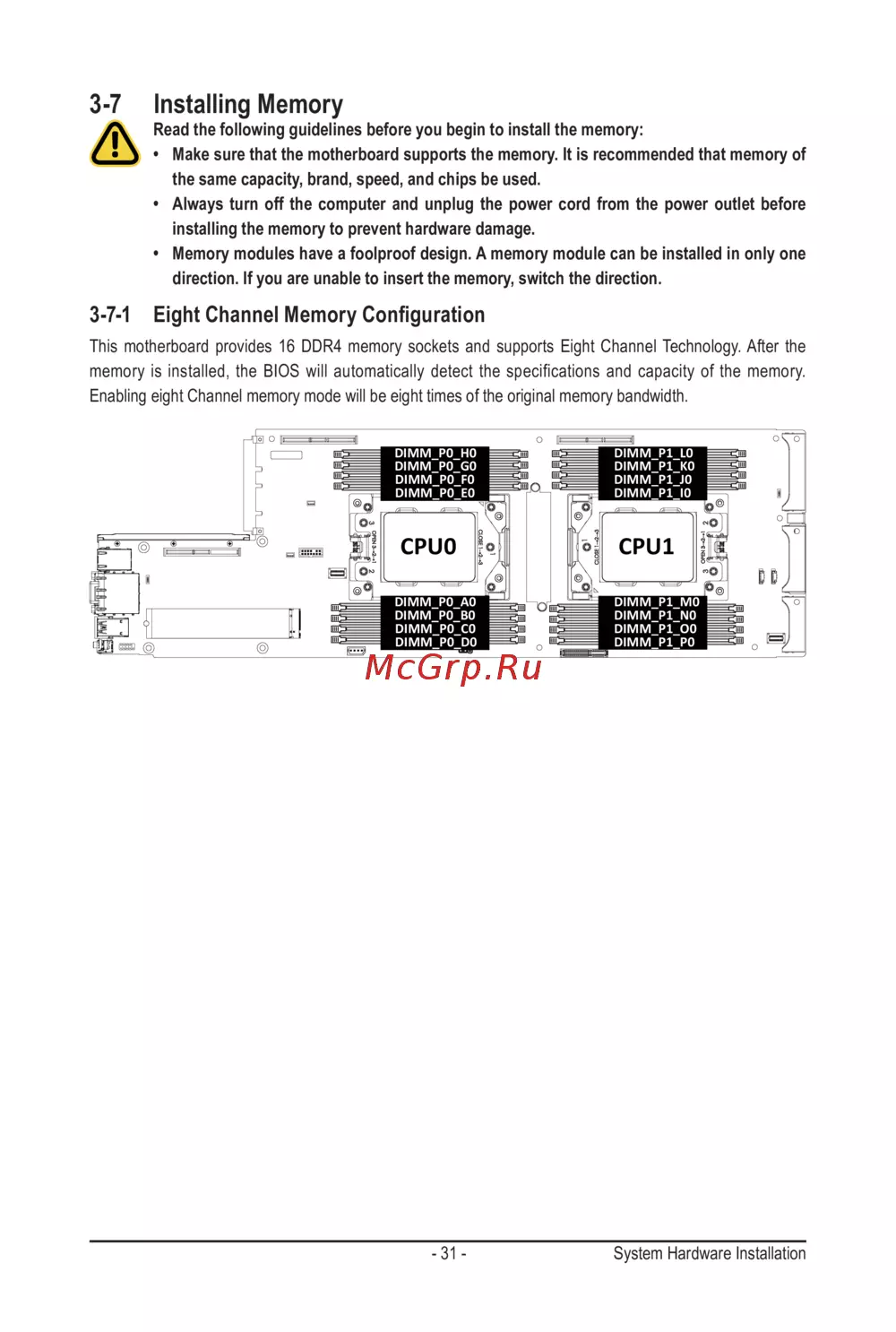 Gigabyte H262-Z6B (rev. 100) [33/172] This motherboard provides 16 ddr4 memory sockets and supports eight channel technology after the memory is installed the bios will automatically detect the specif...
