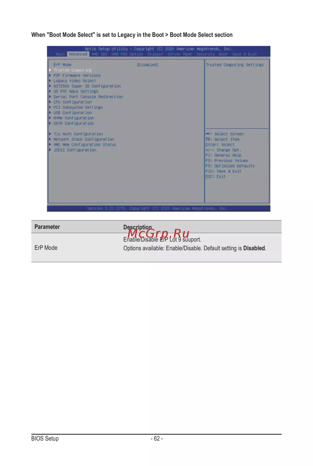 Gigabyte H261-PC0 (rev. 100)Руководство пользователя ErP Mode BIOS Setup -