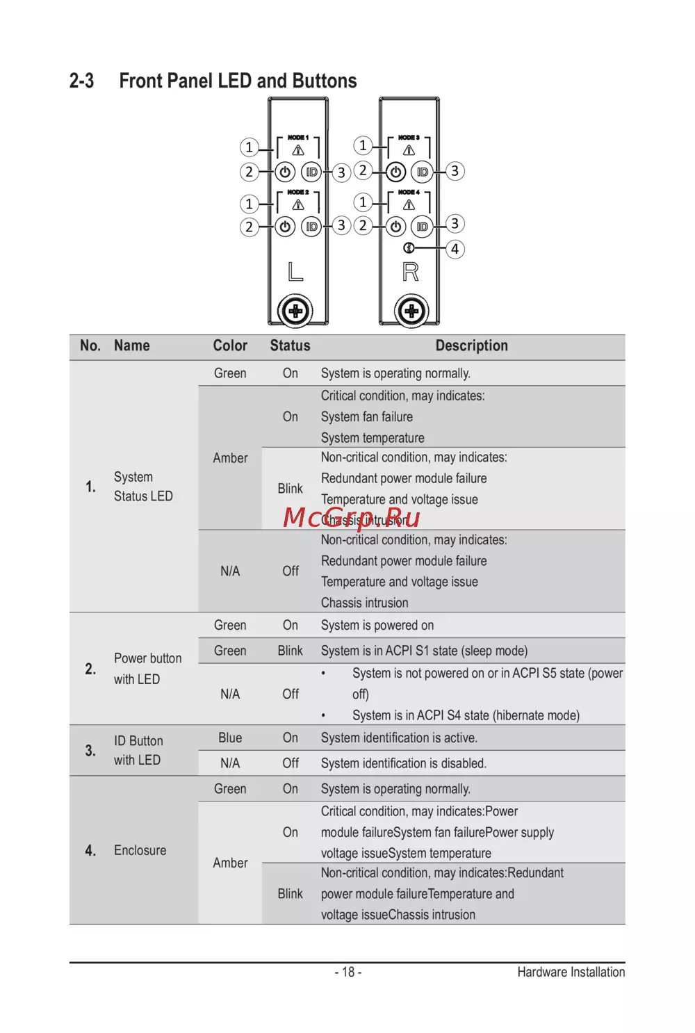 2-3 Front Panel LED and Buttons