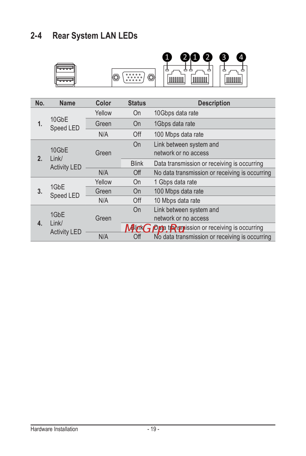 Gigabyte H261-3C0 (rev. 100) [19/123] 4 rear system lan leds