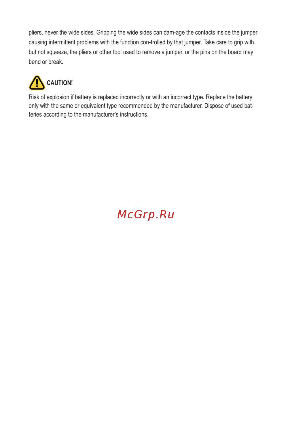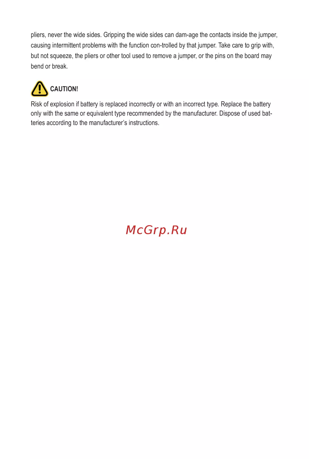 but not squeeze, the pliers or other tool used to remove a jumper, or the pins on the board may