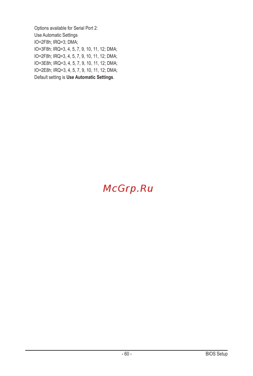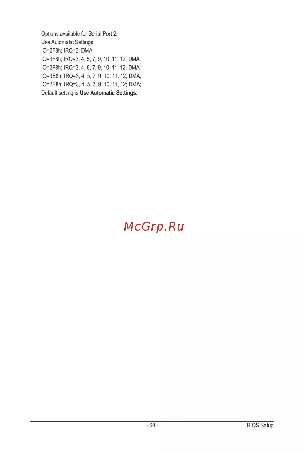 Options available for Serial Port 2: