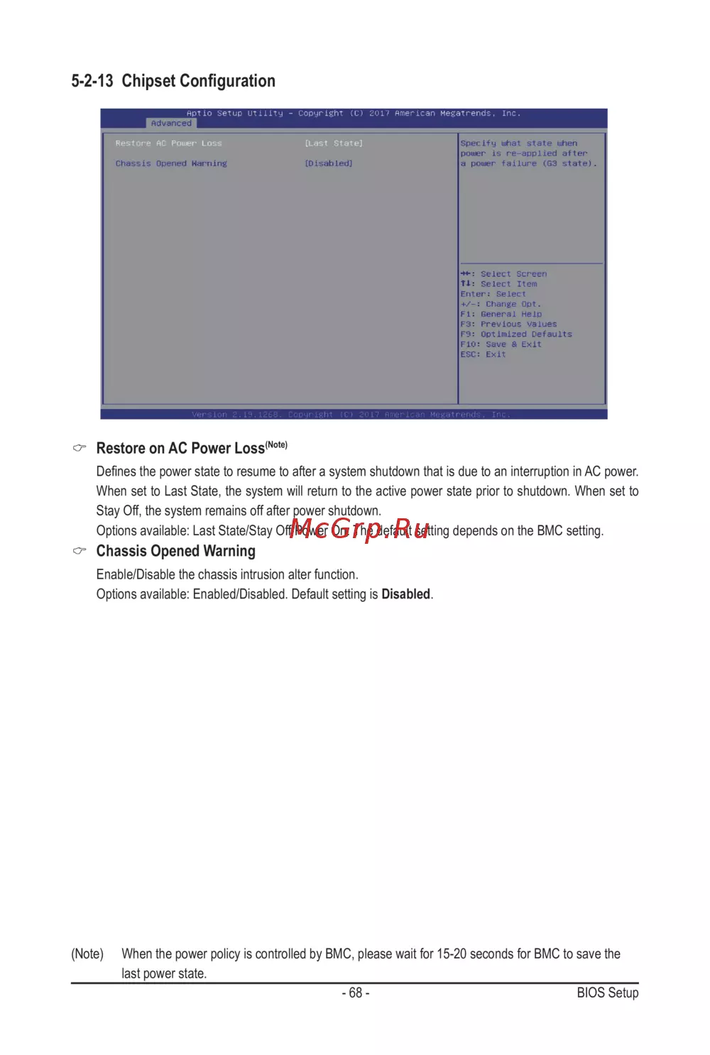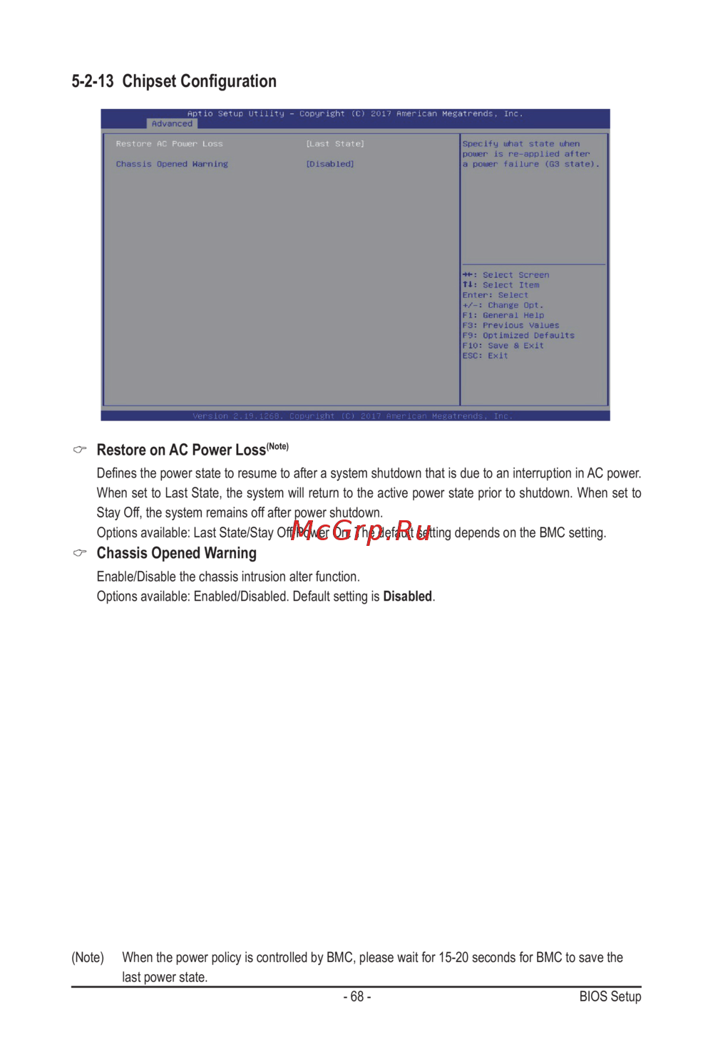 Gigabyte H261-3C0 (rev. 100) — настройки BIOS: управление питанием и предупреждения о корпусе [68/123]