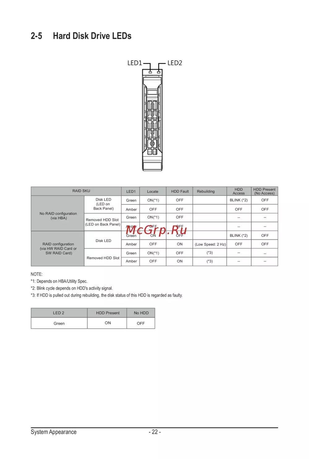 - Note 1 depends on hba utility spec 2 blink cycle depends on hdd s activity signal 3 if hdd is pulled out during rebuilding the disk status of this hdd is regarded as faulty p.22