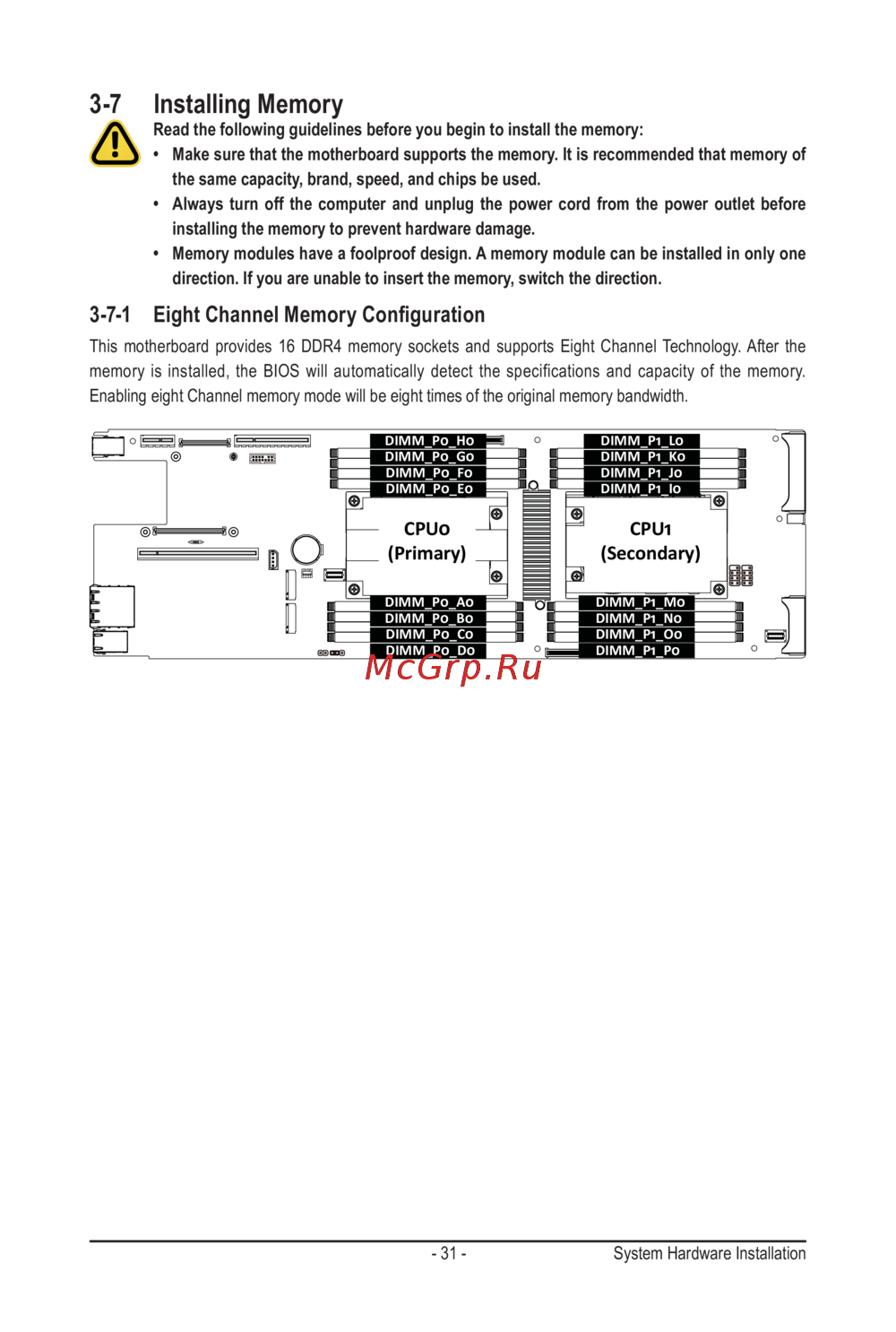 Gigabyte H261-Z60 (rev. A00) — установка памяти на материнской плате с восьмиканальной конфигурацией [31/130]