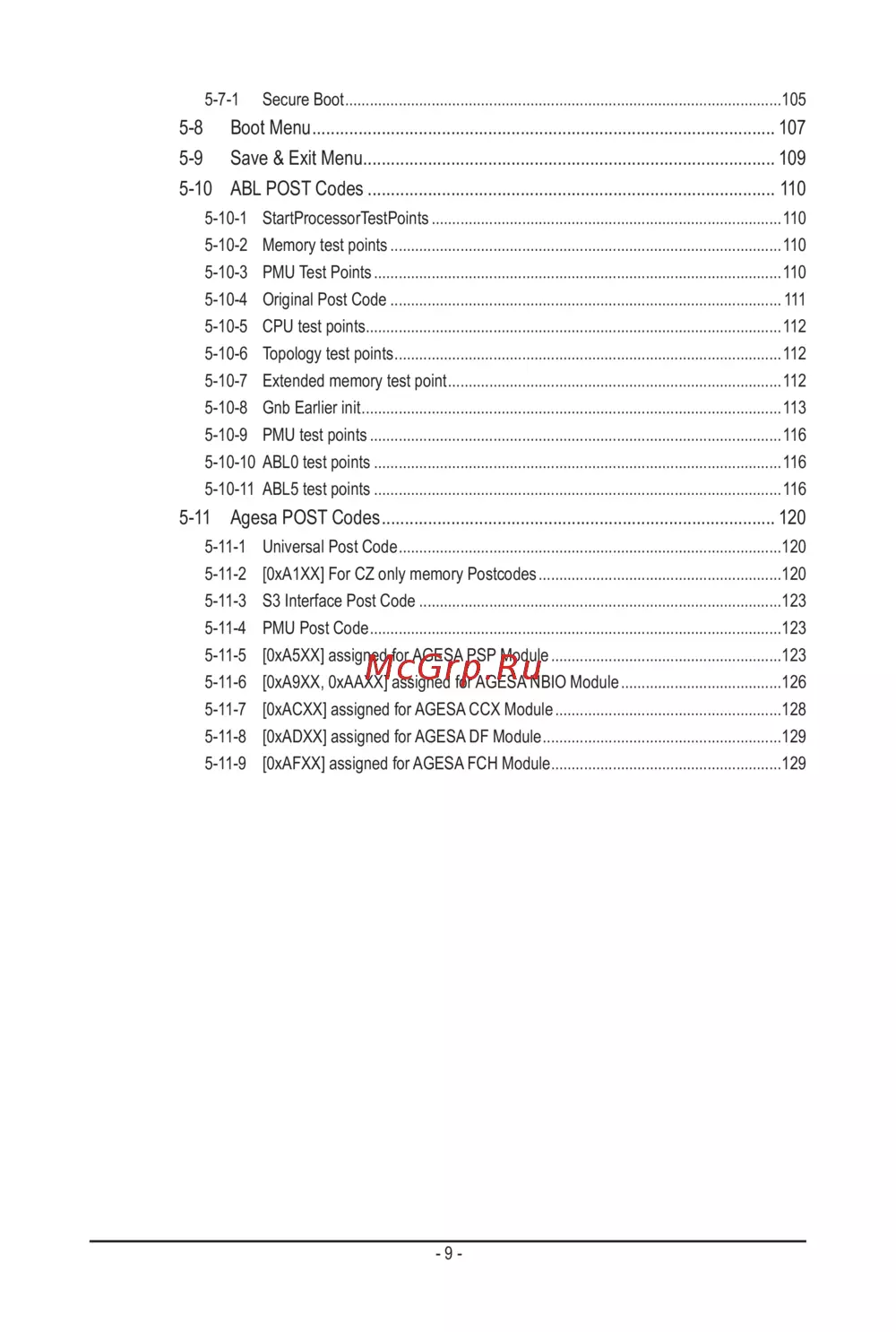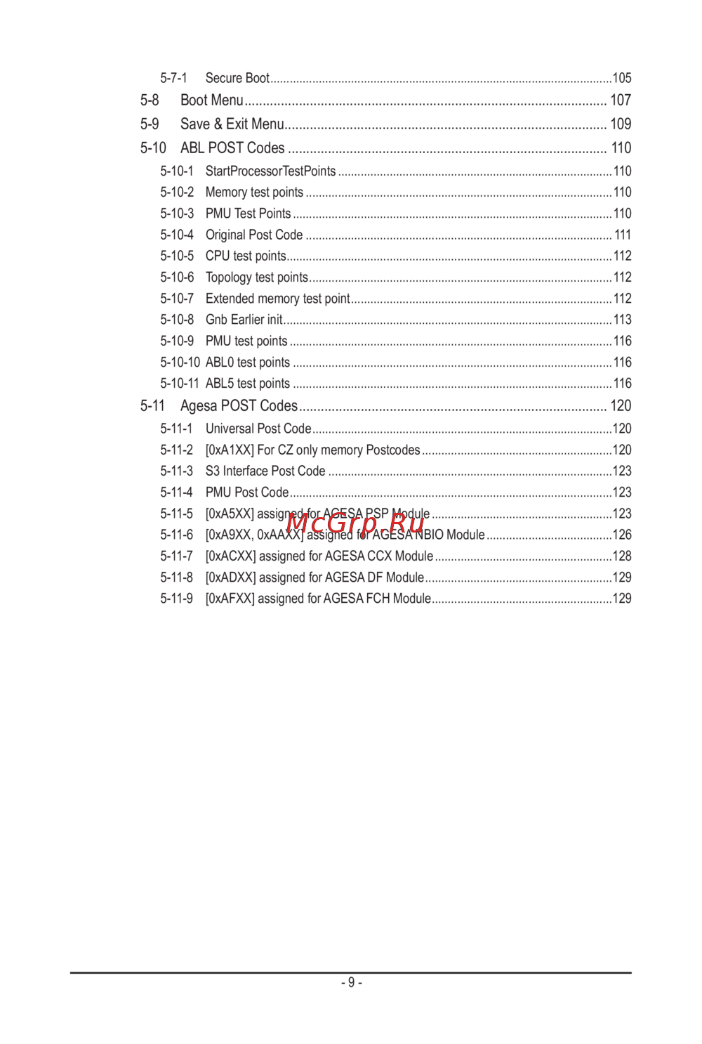 ![Gigabyte H261-Z60 (rev. A00) [9/130] 8 boot menu 107 5 9 save exit menu 109 5 10 abl post codes 110](/views2/1681270/page9/bg9.png)