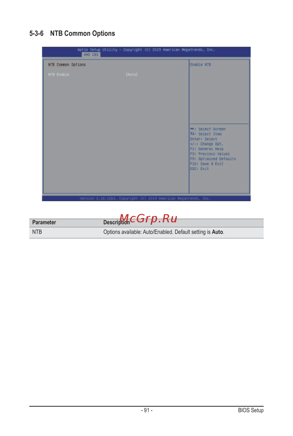 NTB Options available: Auto/Enabled. Default setting is Auto.