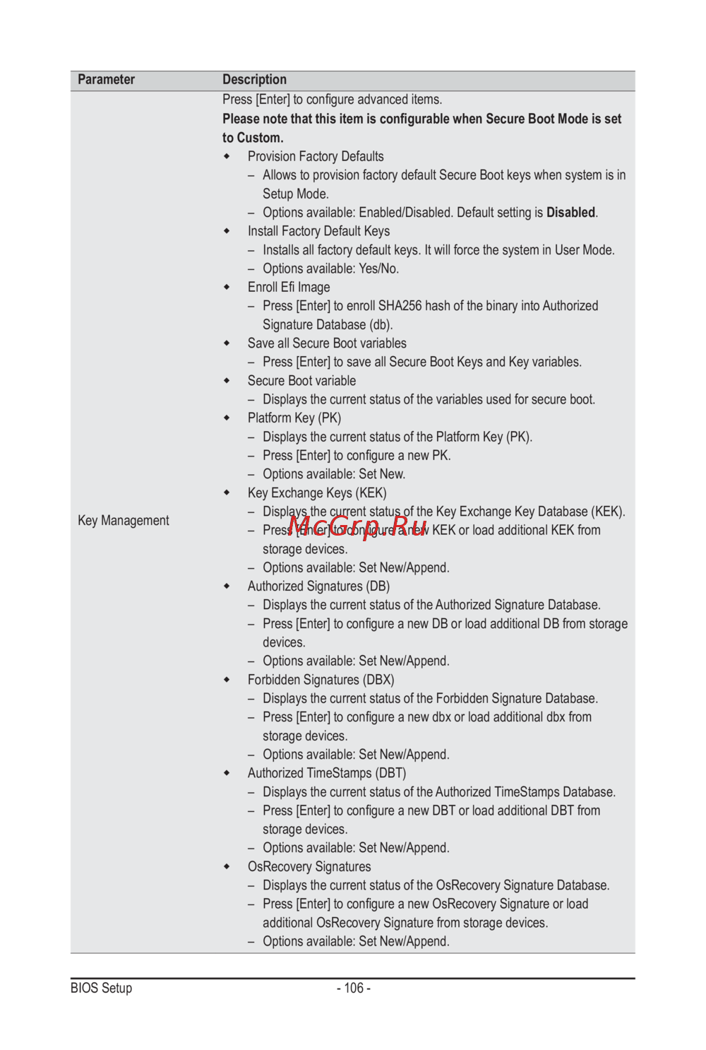 – Press [Enter] to save all Secure Boot Keys and Key variables.