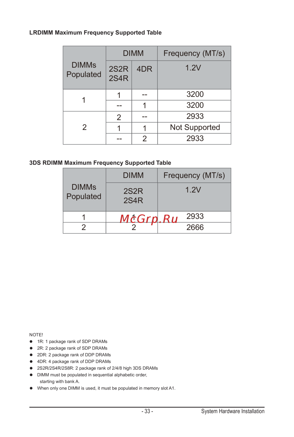 3DS RDIMM Maximum Frequency Supported Table