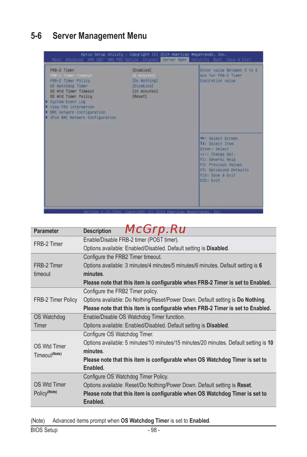 (Note) Advanced items prompt when OS Watchdog Timer is set to Enabled.