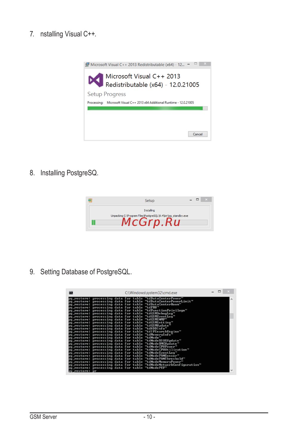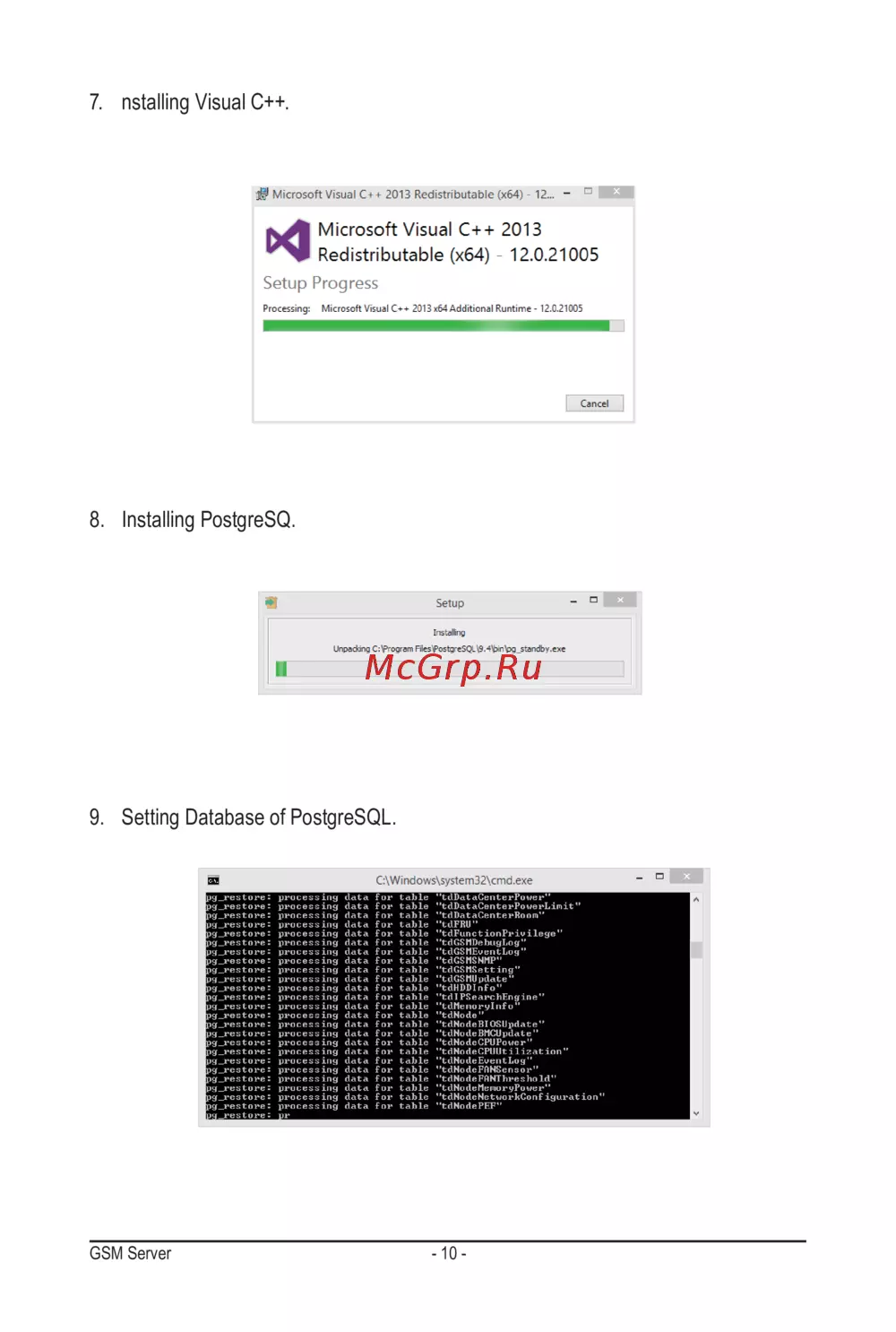 - Note 1 installation will detect postgresql 9 and modify its configuration please backup postgresql settings before you install gsm server however if postgresql 9 doesn t exist do not install any postgresql and skip this suggestion please 2 installation will install and place java and postgresql sources for gsm server to opt do not modify and remove them it s very important 3 after finishing installation installer adds firewall exception such as 8080 8443 162 69 and tftp to public zone if you do not use public zone as default please add firewall exception manually p.12