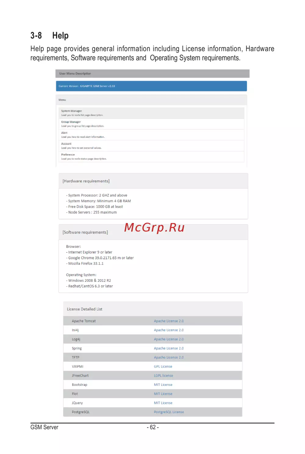 ![Gigabyte MZ72-HB0 (rev. 1.x) [62/68] Help page provides general information including license information hardware requirements software requirements and operating system requirements](/views2/1679888/page62/bg3e.png)
