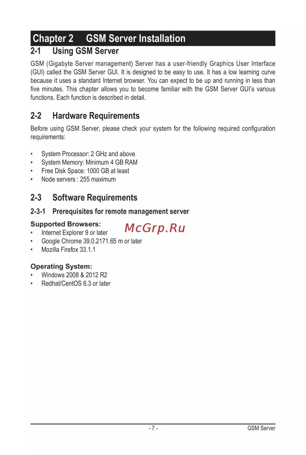- 1 using gsm server 7 2 2 hardware requirements 7 2 3 software requirements 7 p.3