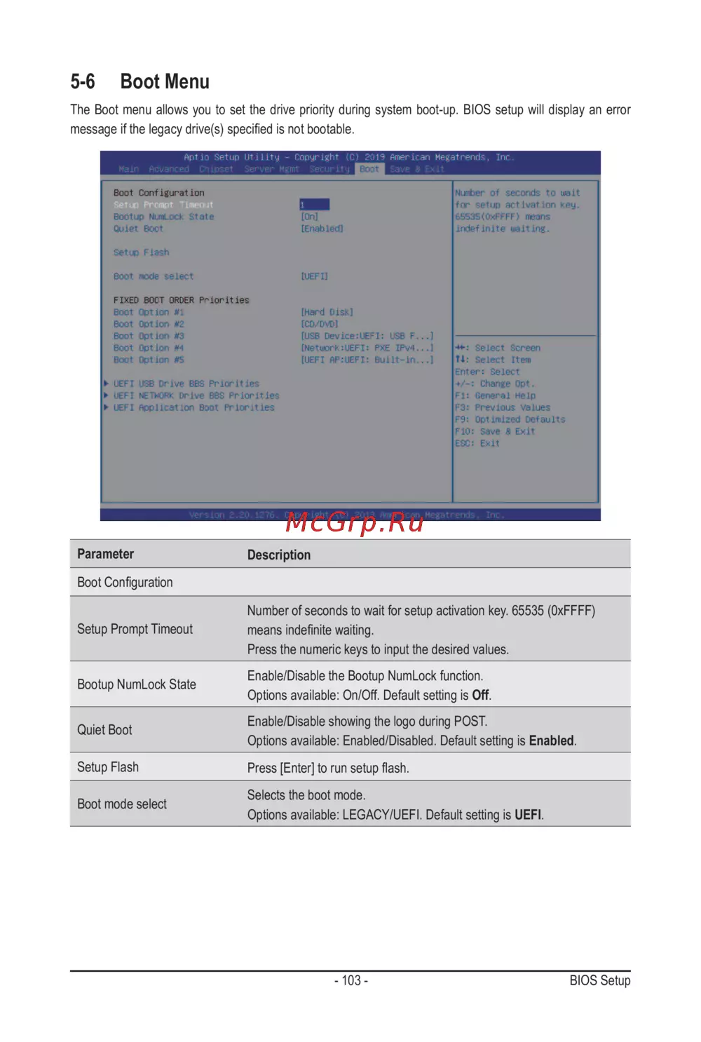 Gigabyte H261-NO0 (rev. 100) — настройка BIOS: Параметры загрузки и конфигурации системы [103/113]