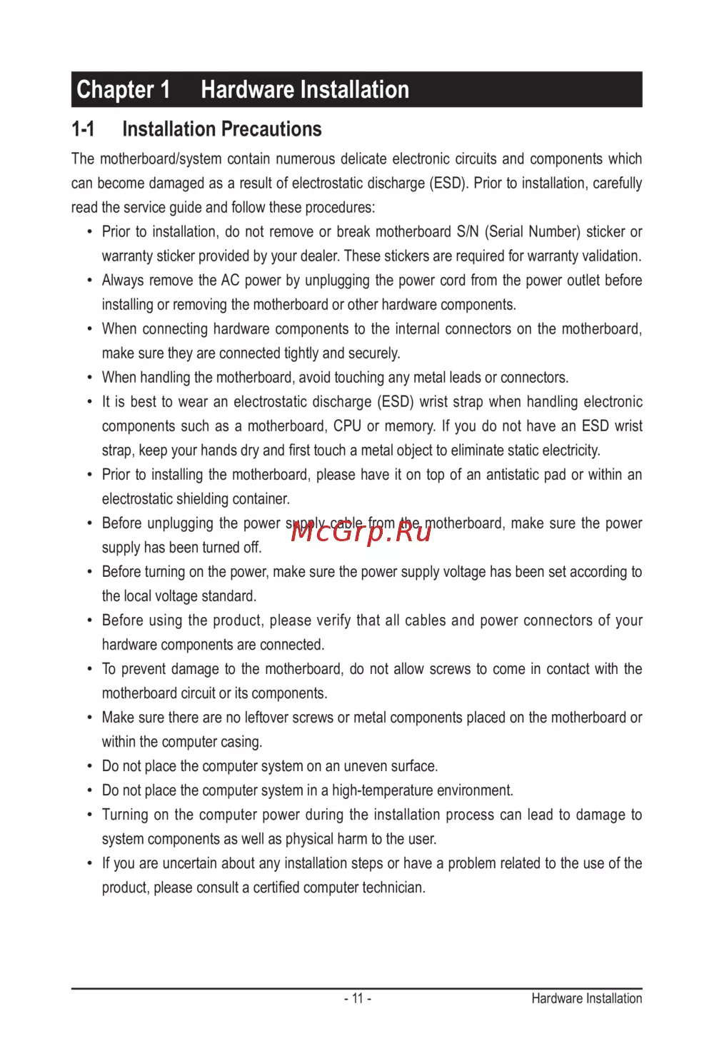 Gigabyte H261-NO0 (rev. 100) — руководство по установке аппаратного обеспечения и предостережения [11/113]