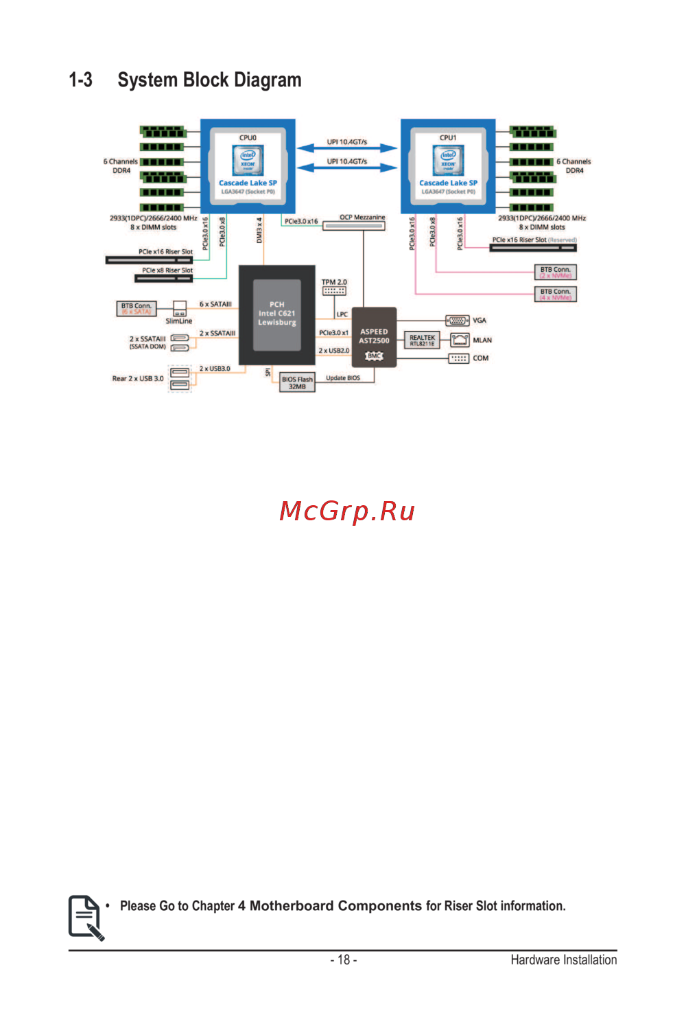 • Please Go to Chapter 4 Motherboard Components for Riser Slot information.