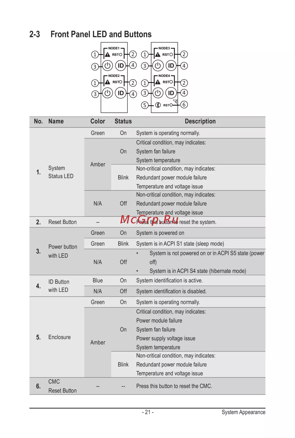 2-3 Front Panel LED and Buttons