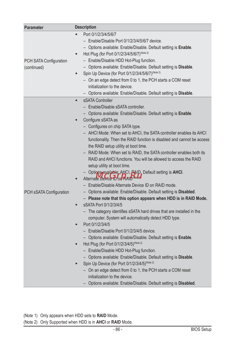 (Note 2) Only Supported when HDD is in AHCI or RAID Mode.