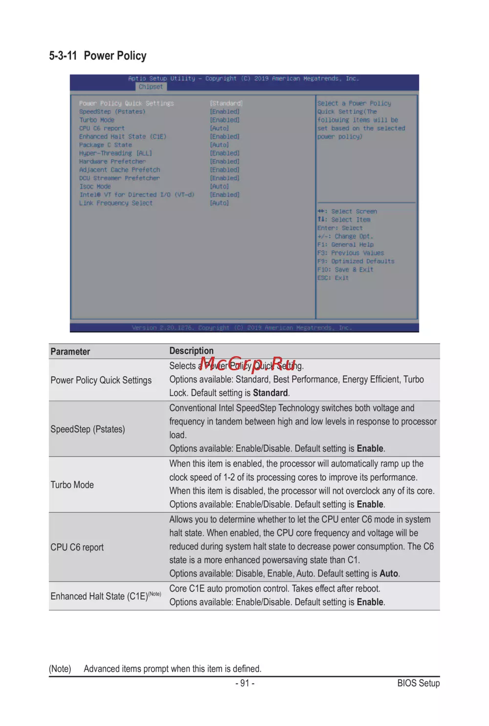 Gigabyte H261-NO0 (rev. 100) — настройки BIOS: Политики питания и производительность процессора [91/113]