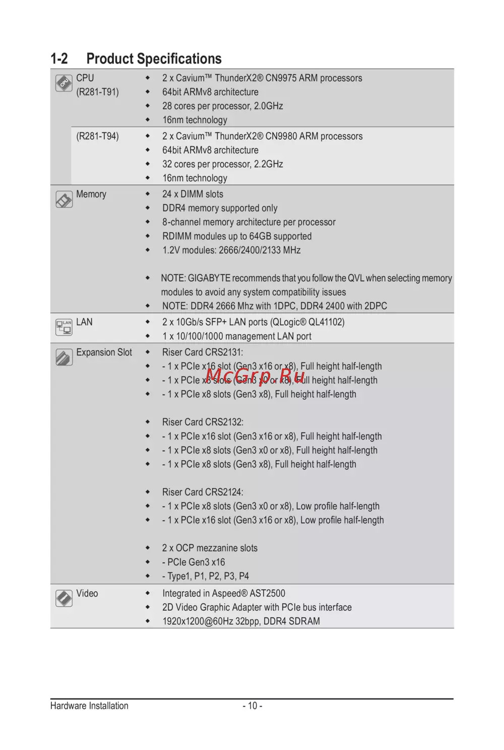 ![Gigabyte R281-T94 (rev. 100) [10/68] 2 product specifications](/views2/1680535/page10/bga.png)