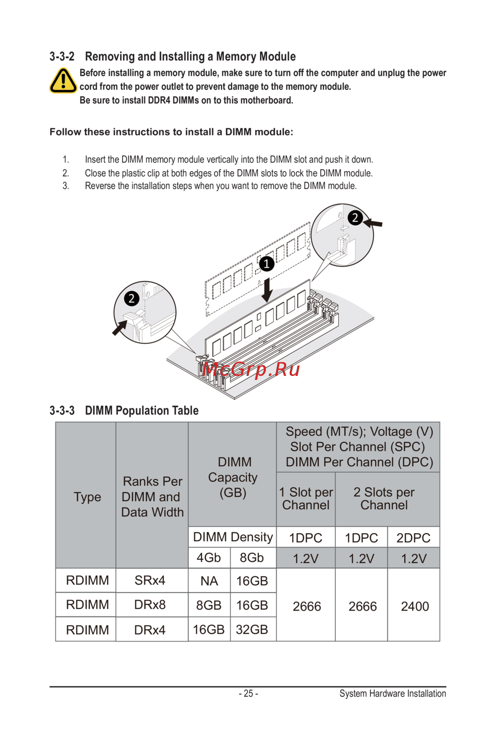 - This motherboard provides 24 ddr4 memory sockets and supports eight channel technology after the memory is installed the bios will automatically detect the specifications and capacity of the memory p.24