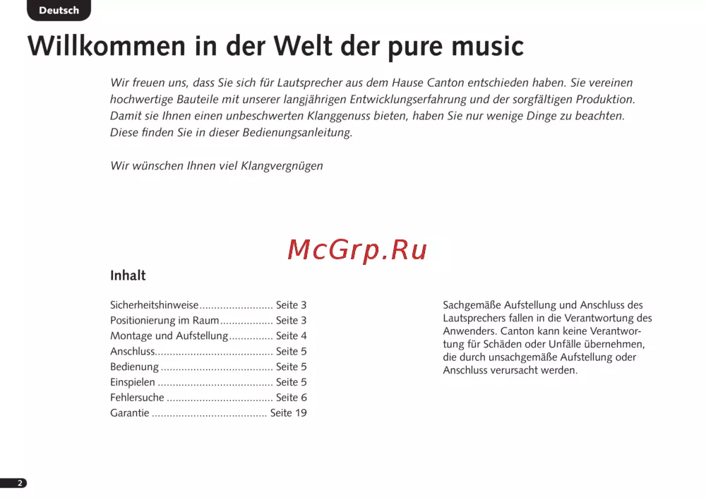 - Wir freuen uns dass sie sich für lautsprecher aus dem hause canton entschieden haben sie vereinen hochwertige bauteile mit unserer langjährigen entwicklungserfahrung und der sorgfältigen produktion damit sie ihnen einen unbeschwerten klanggenuss bieten haben sie nur wenige dinge zu beachten diese finden sie in dieser bedienungsanleitung p.2