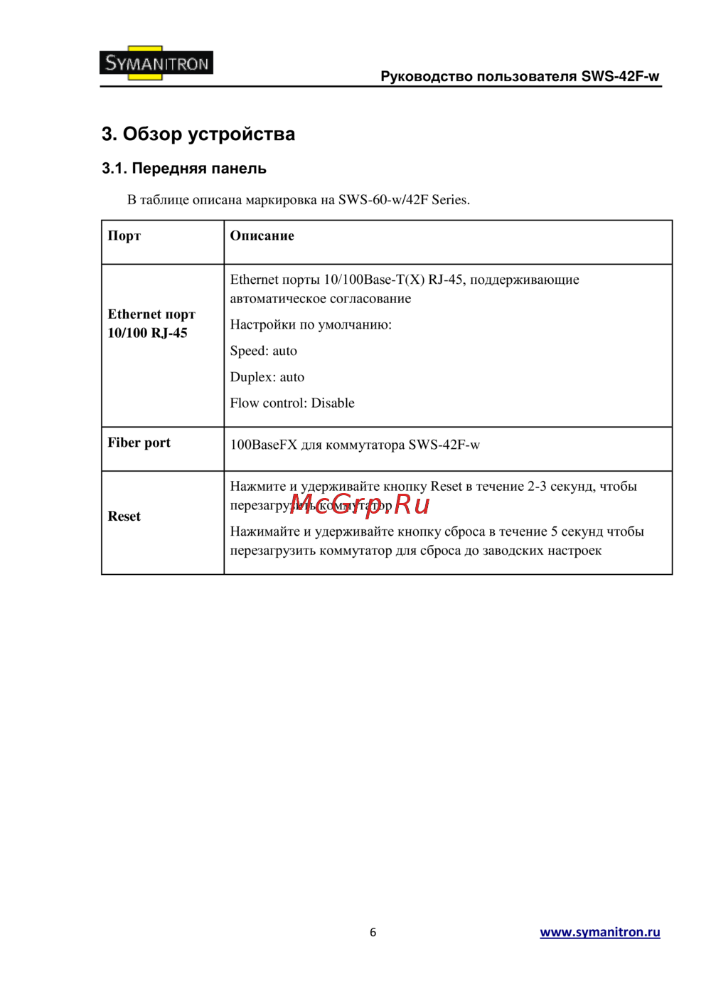 - Описание промышленных частично управляемых ethernet коммутаторов sws 60 w 42f w p.4
