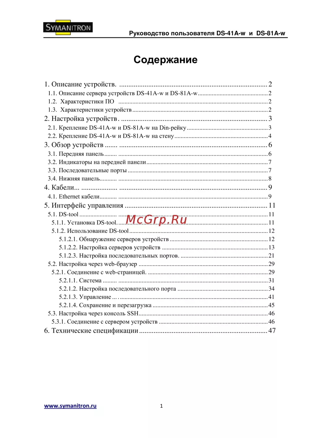 1.1. Описание сервера устройств DS-41A-w и DS-81A-w ............................................. 2