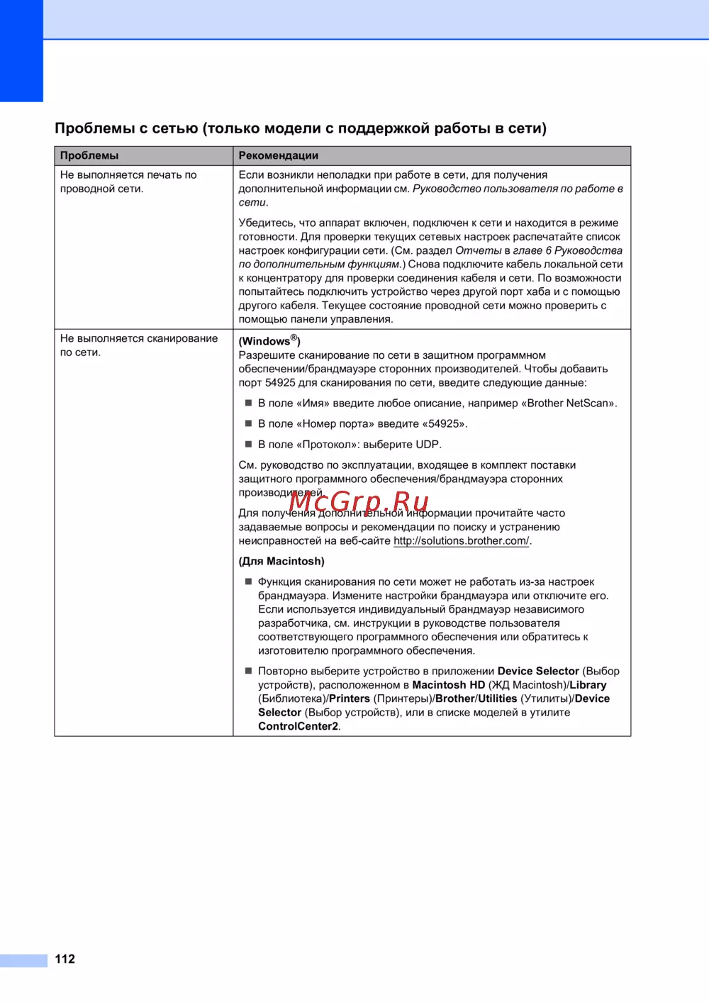 Brother MFC-7360NR — решение проблем с печатью и сканированием по сети [122/180]