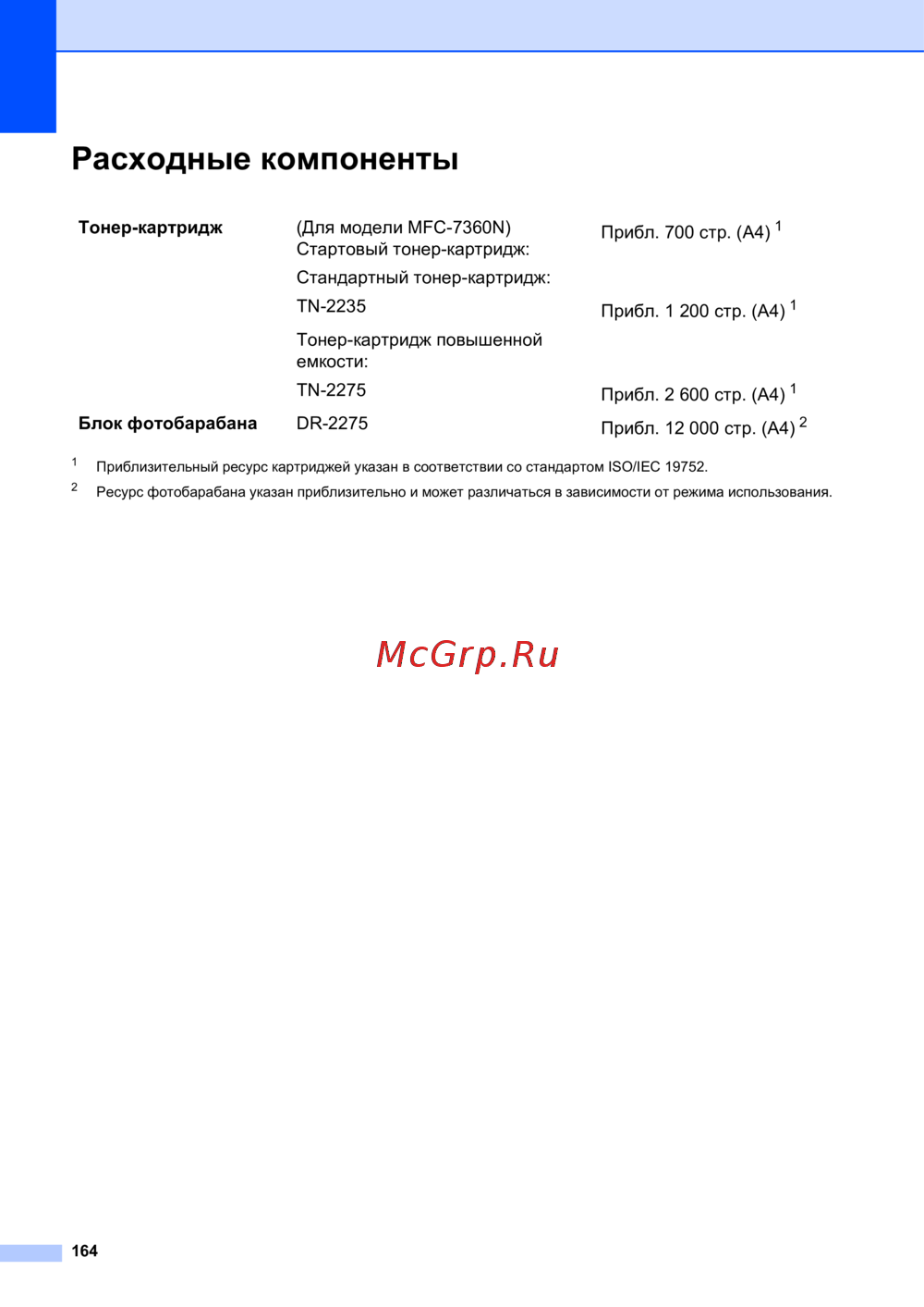 Brother MFC-7360NR [174/180] Расходные компоненты