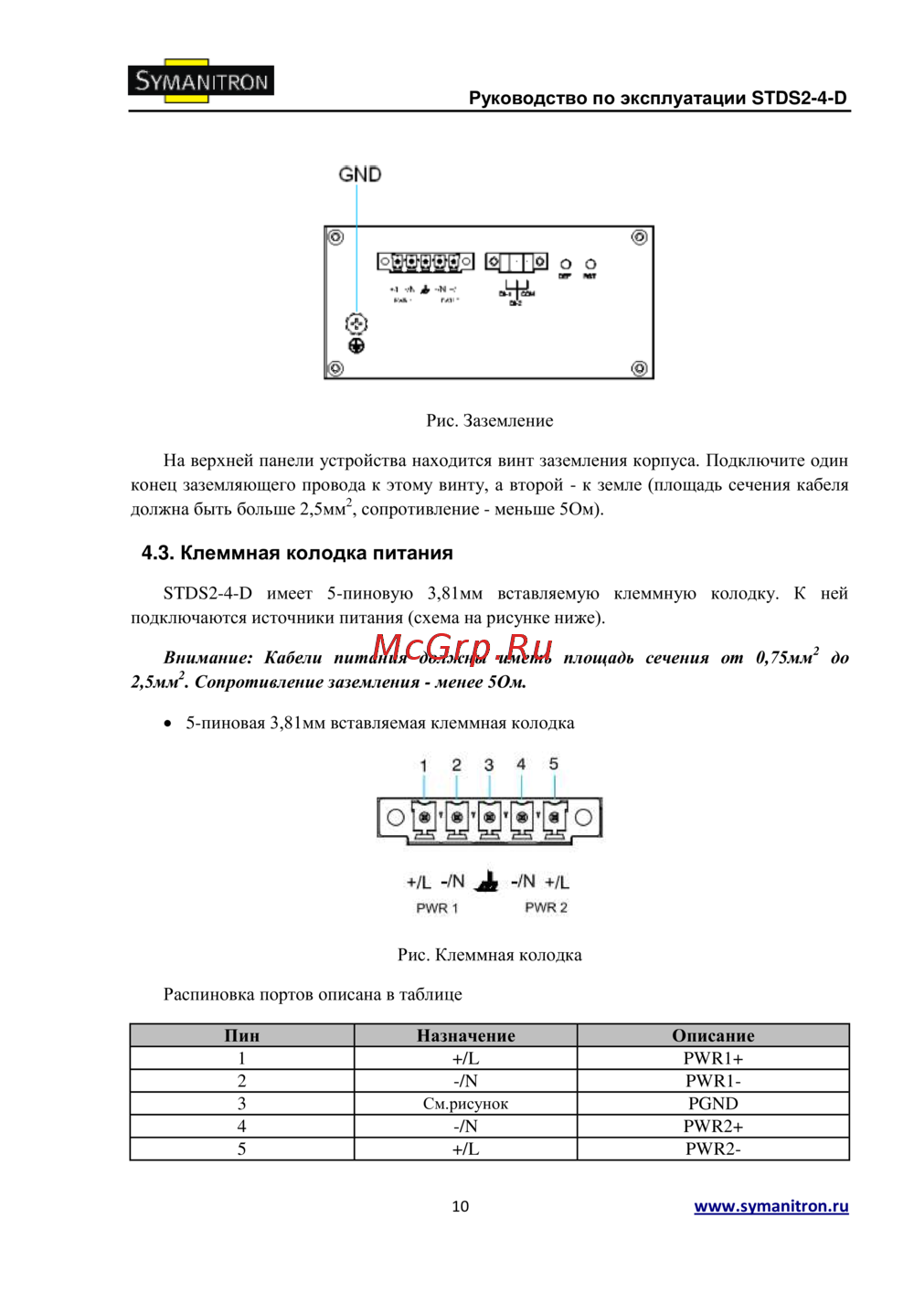 Symanitron STDS2-4-D — руководство по эксплуатации клеммных колодок питания [11/18]