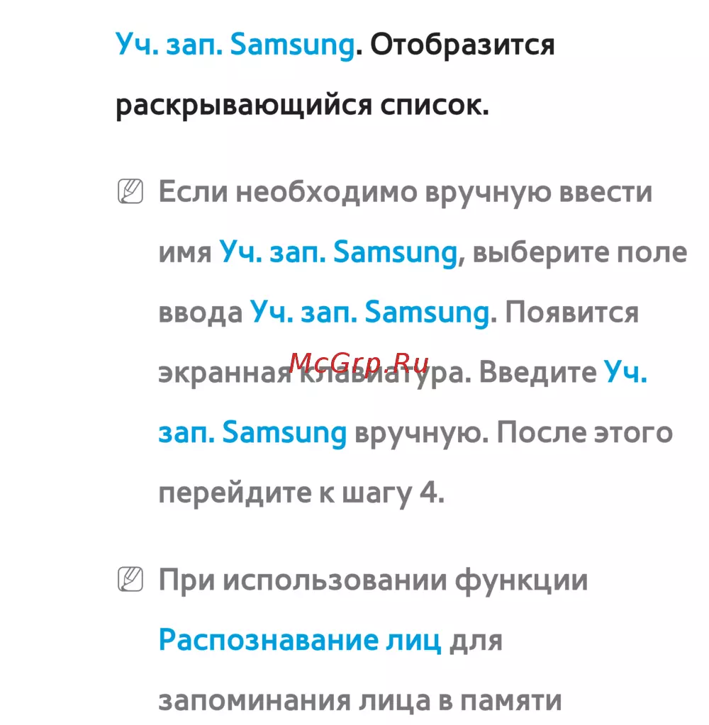 ввода Уч. зап. Samsung. Появится