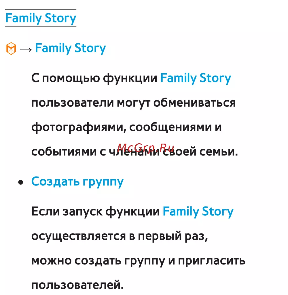 С помощью функции Family Story