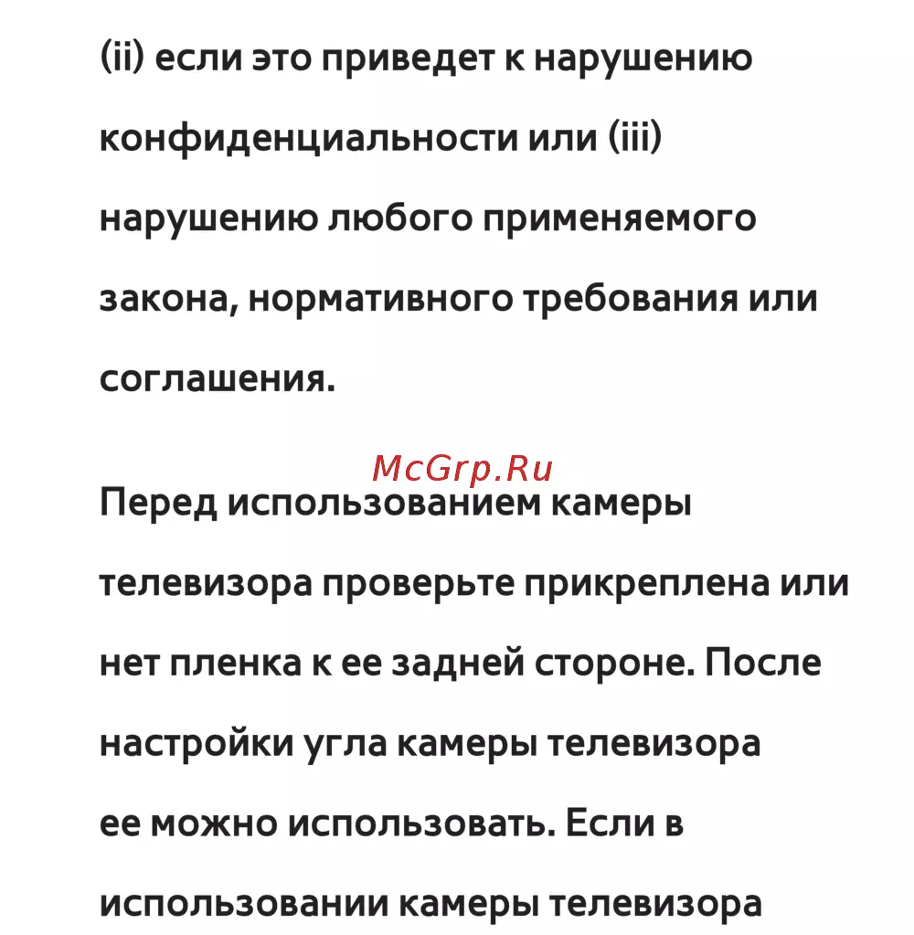 использовании камеры телевизора