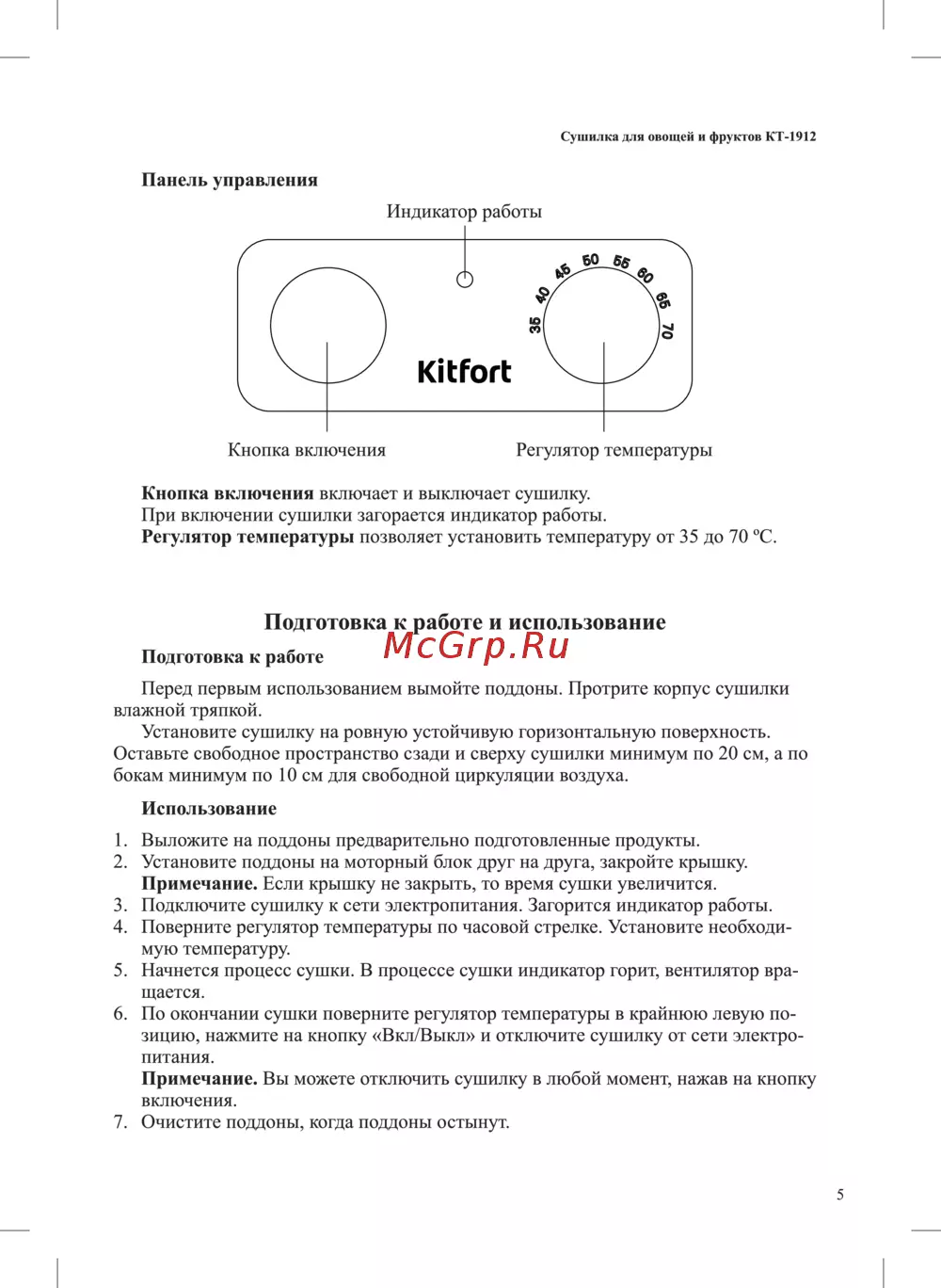 Kitfort KT-1912 [5/12] Подготовка к работе и использование