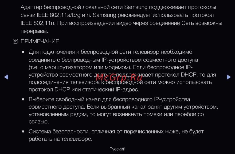 связи IEEE 802,11a/b/g и n. Samsung рекомендует использовать протокол