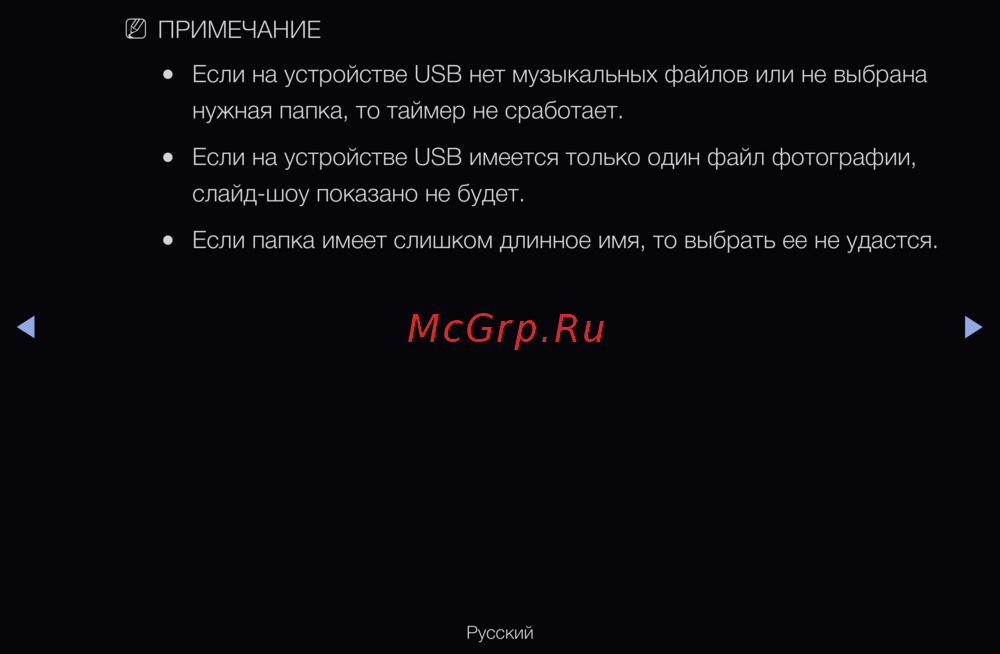 - Если на устройстве usb имеется только один файл фотографии слайд шоу показано не будет p.130