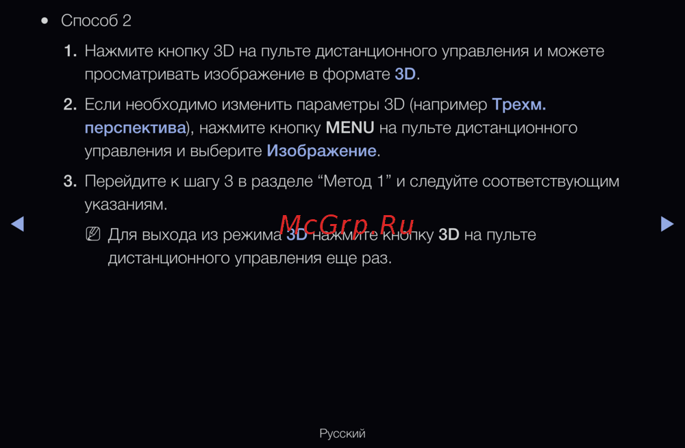 Для выхода из режима 3D нажмите кнопку 3D на пульте