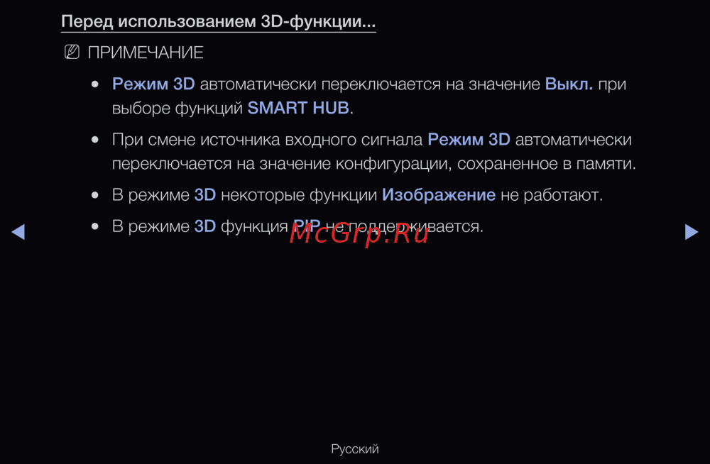 - Соблюдайте угол обзора и оптимальное расстояние до телевизора при просмотре изображений в формате 3d p.169