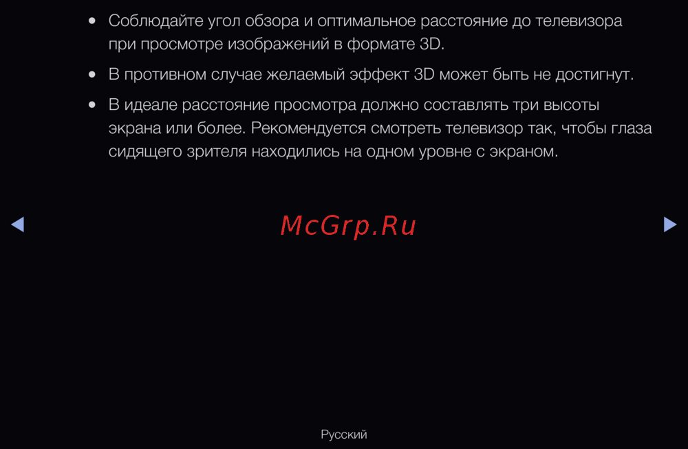 - Соблюдайте угол обзора и оптимальное расстояние до телевизора при просмотре изображений в формате 3d p.169