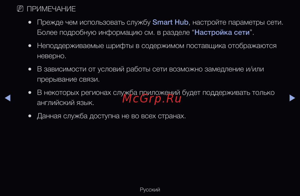 Прежде чем использовать службу Smart Hub, настройте параметры сети.