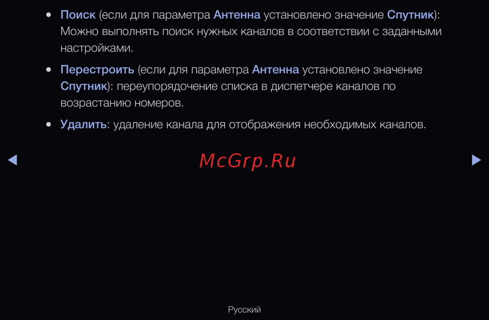 Поиск (если для параметра Антенна установлено значение Спутник):