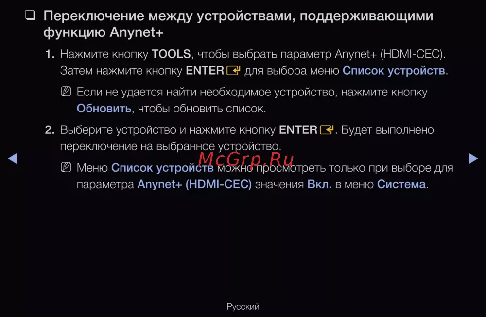 - Переключение между устройствами поддерживающими функцию anynet p.219