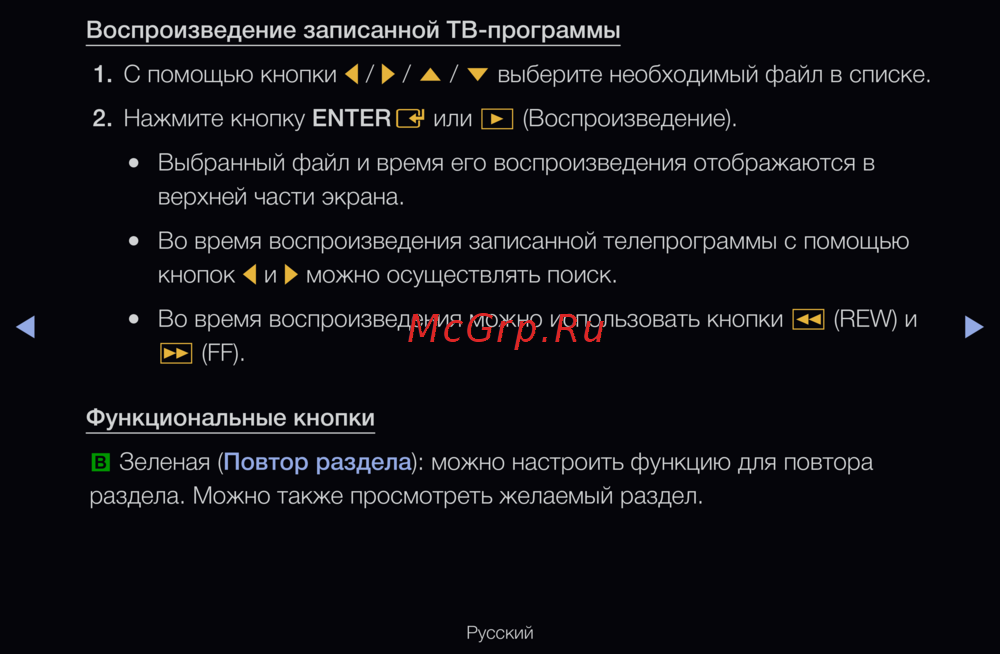 Воспроизведение записанной ТВ-программы